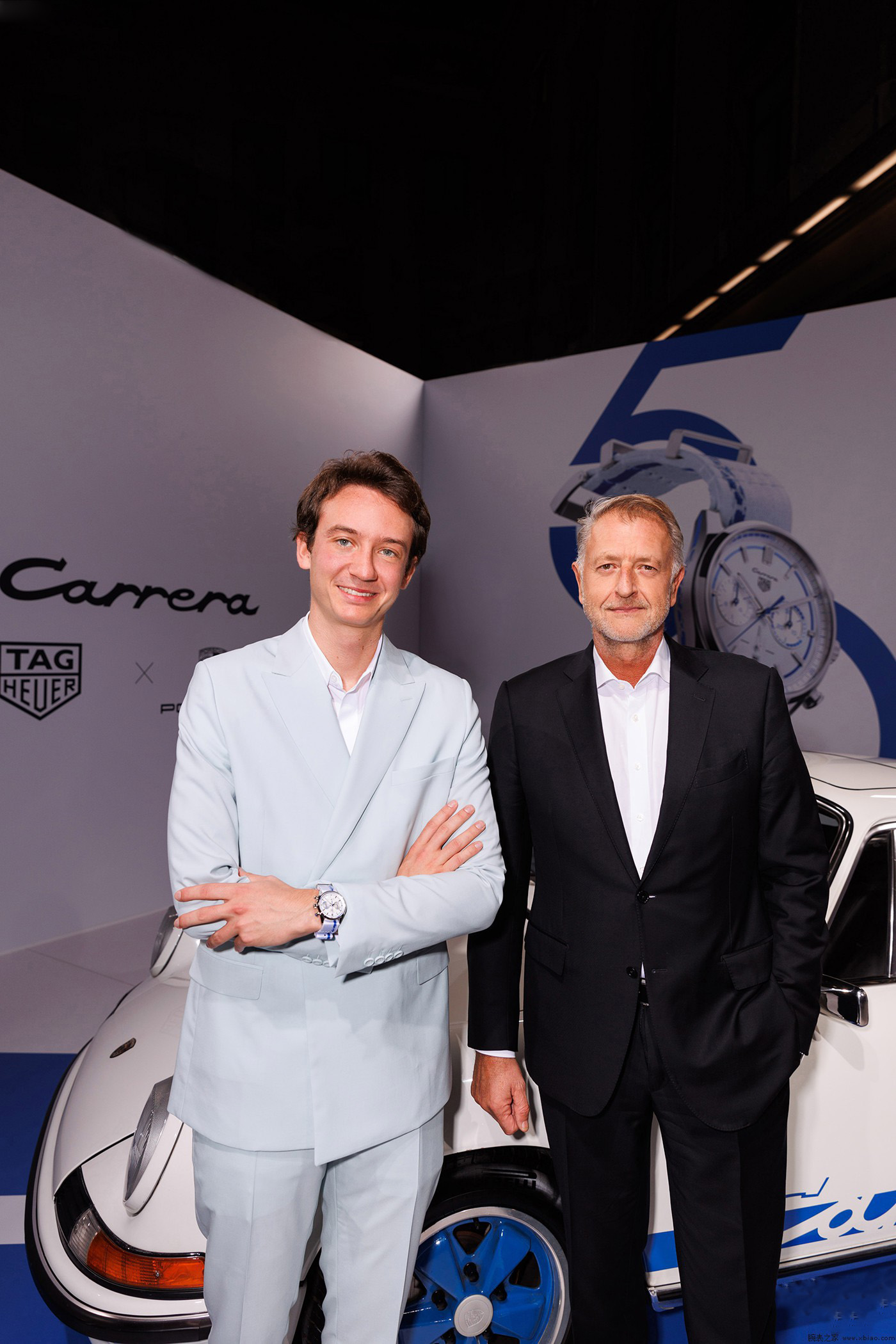 泰格豪雅首席執(zhí)行官Frédéric Arnault(左)與保時捷負(fù)責(zé)銷售與市場營銷的執(zhí)行董事會成員Detlev von Platen(右)